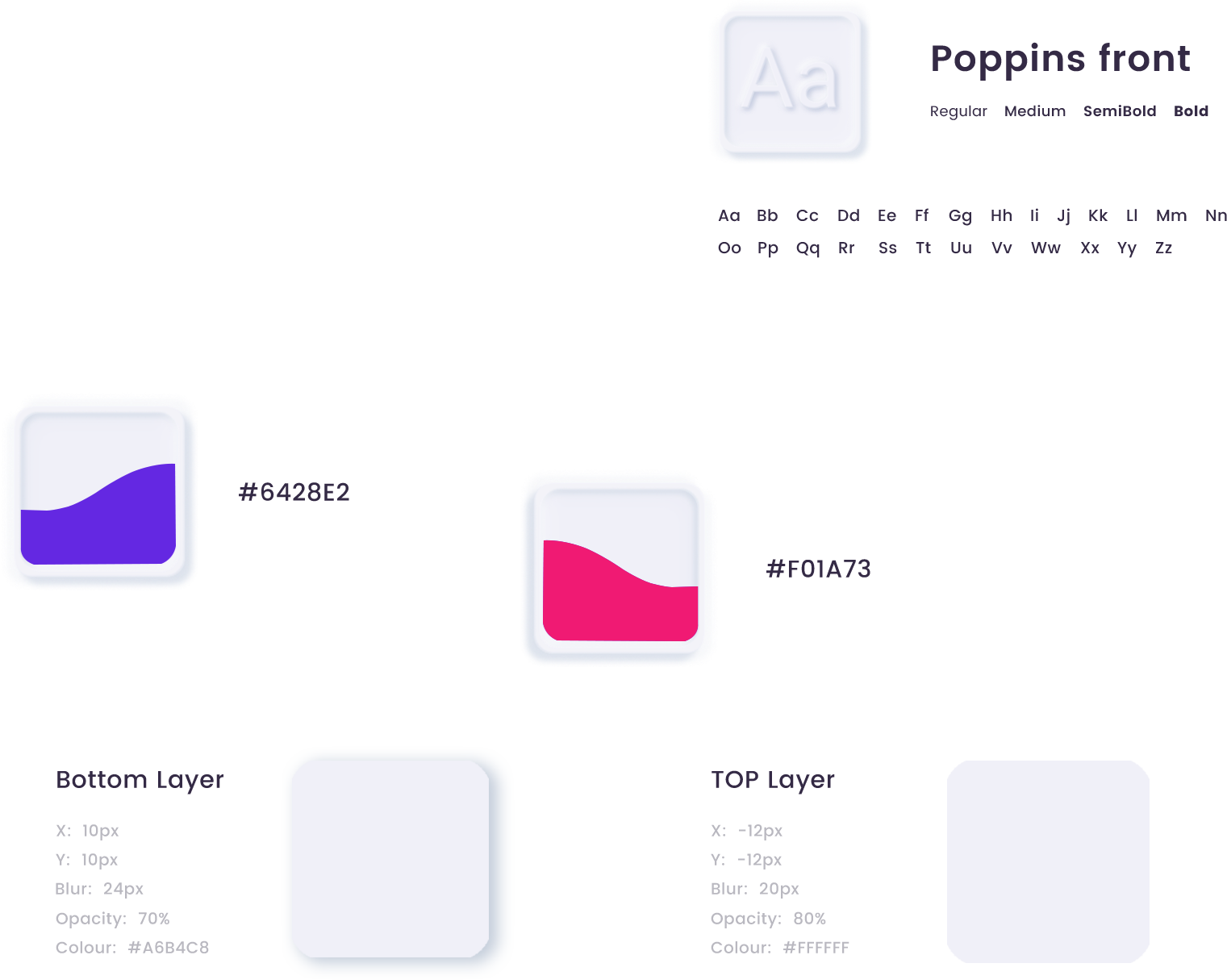 I've chosen bright colors to balance the clean neumorphic style, adding lively accents.